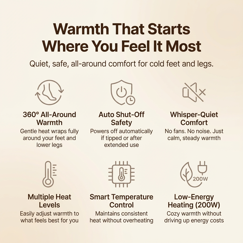 It’s ideal for anyone with cold feet or legs — especially people who sit for long periods, work at a desk, feel cold easily, or want a cozy, energy-efficient alternative to space heaters.