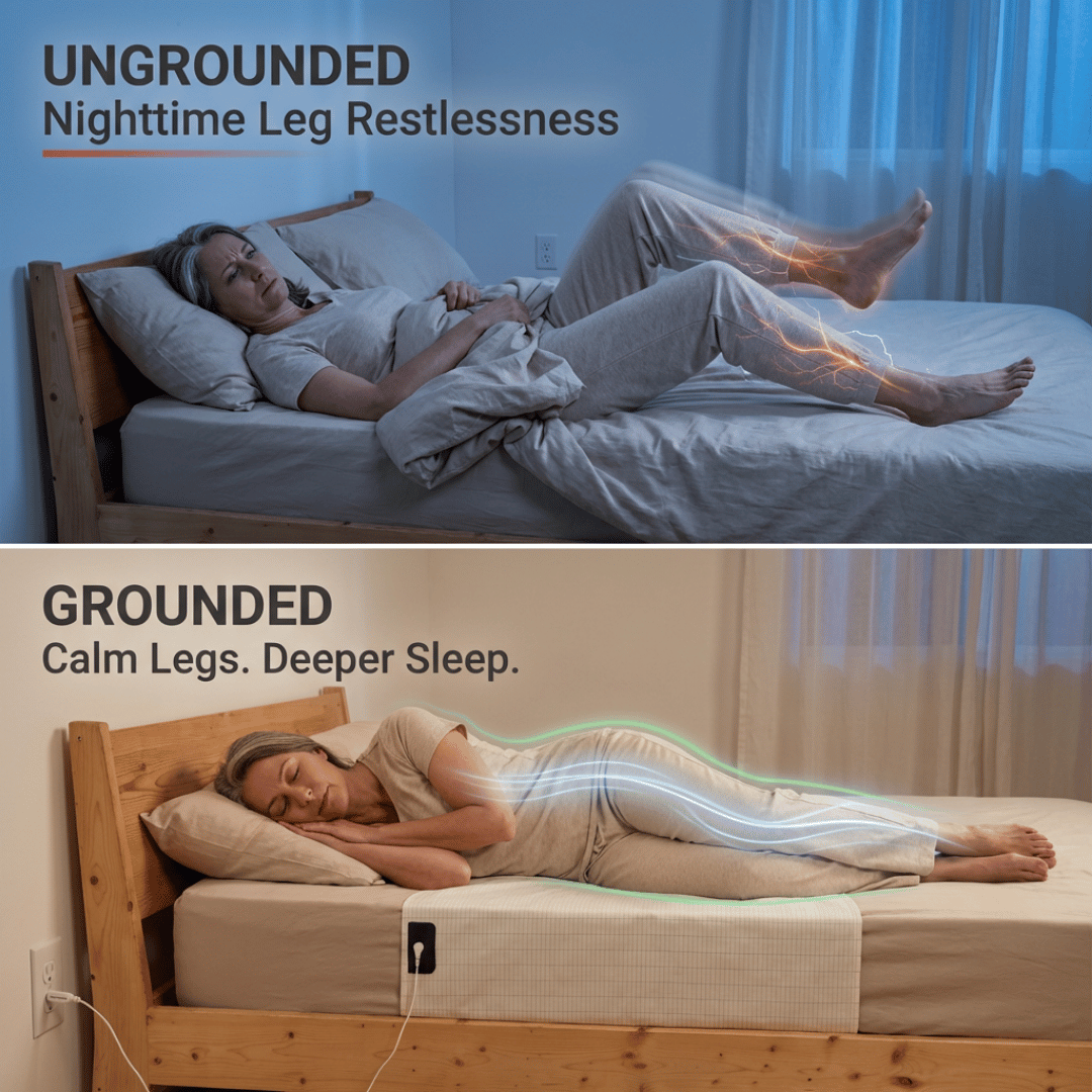 Your body is bioelectrical by nature. Every nerve signal, every restless impulse in your legs runs on electrical charge. For most of human history, sleeping on the ground and walking barefoot meant excess charge drained naturally from the body overnight.