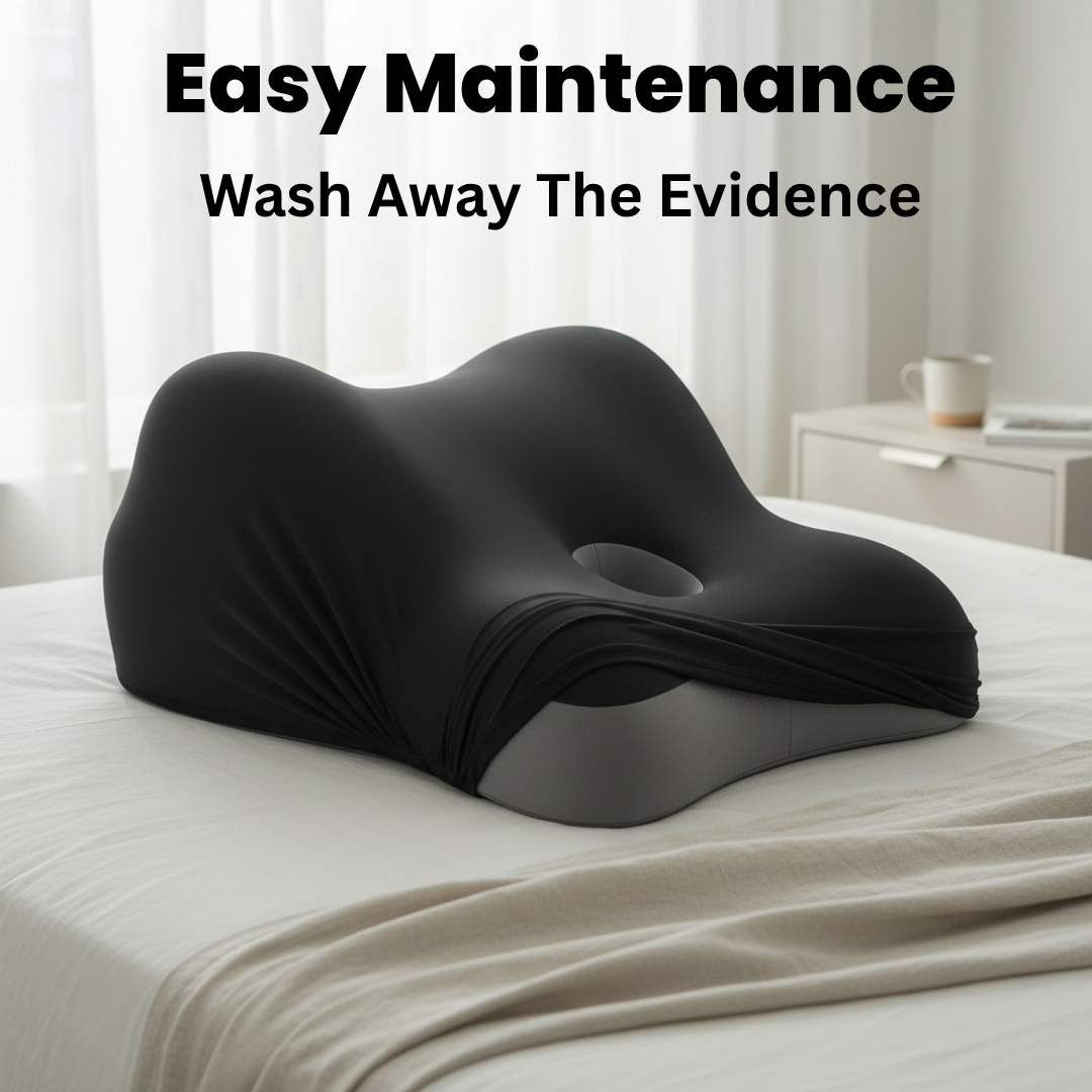 Comes with a removable, washable cover that handles everything. The pillow itself has a waterproof barrier for easy maintenance. Toss the cover in the washing machine, wipe down the pillow if needed. No fuss, no embarrassment—just practical hygiene for regular use.